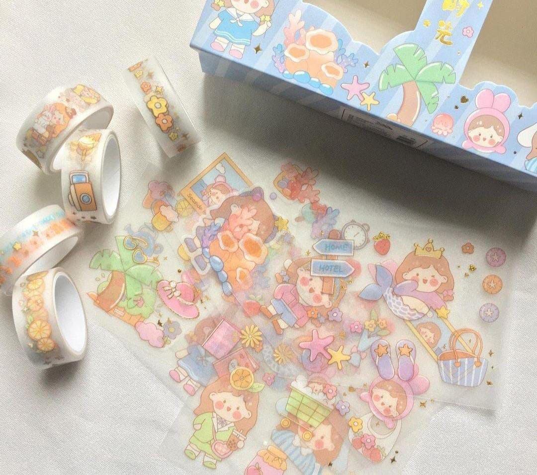 10 laminas de stickers + 4 washi tape